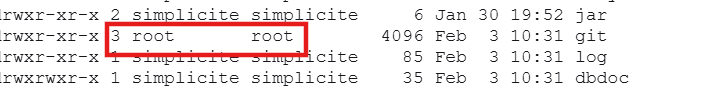 Et le répertoire git est granté à root et non à simplicite.