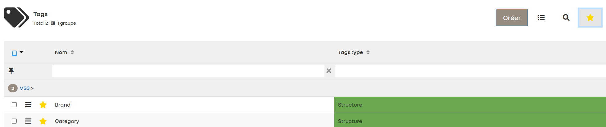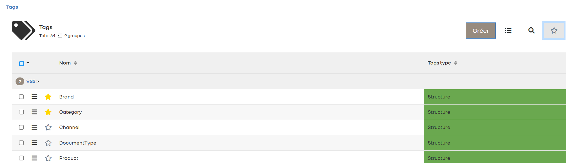 Lorsque je mets un tag en favori depuis la vue liste, l’information est bien prise en compte et persistée.