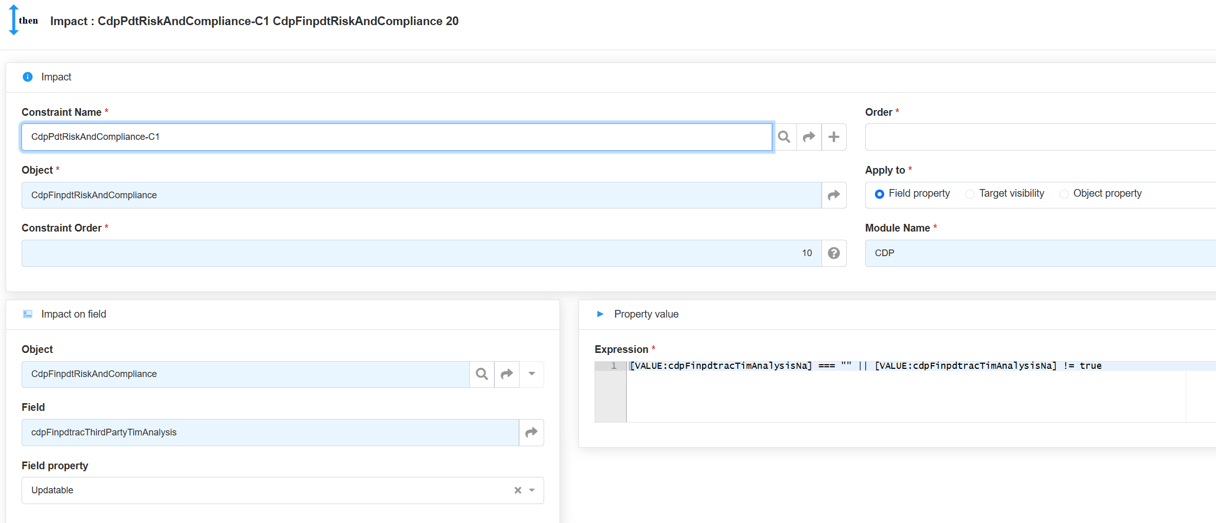 - avoir une contrainte qui rend ce champ updatable ou non