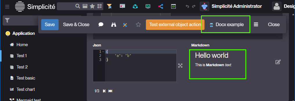 PS: the doc has been updated to provide examples for Docx: Documents code examples | Simplicité Documentation