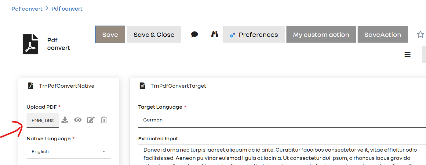 Regarding your custom download action, I can’t see how you have implemented the action method. Please provide more parts of your code (in particular the signature of the method) and the screenshot of the corresponding configured action so as I can check if everything is correct.