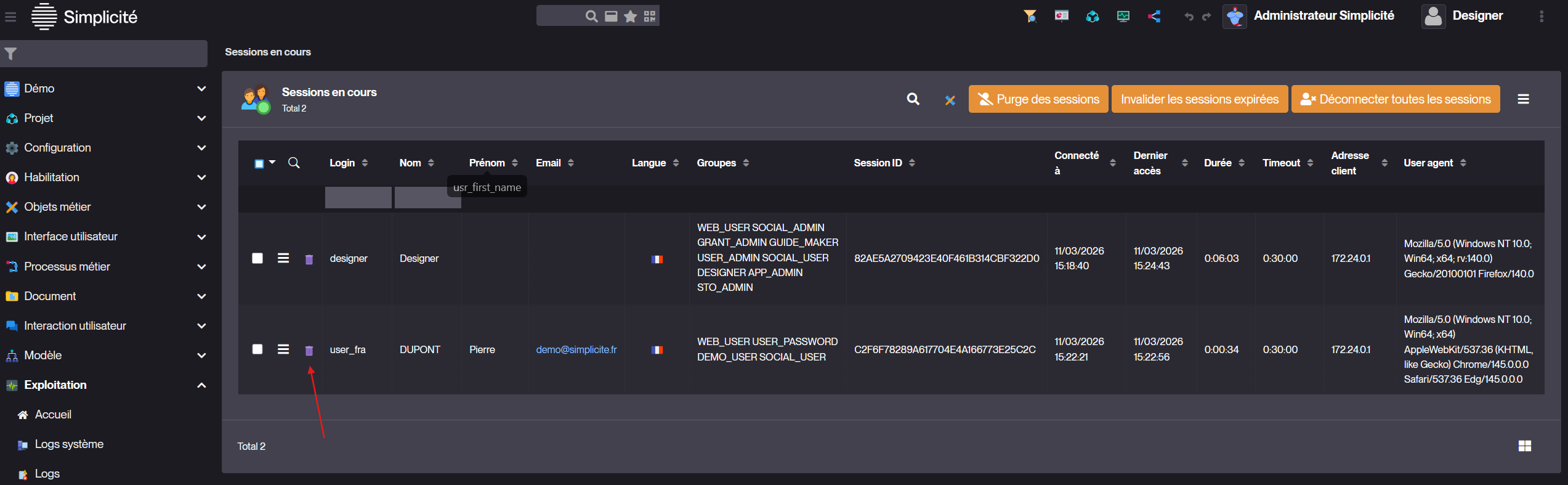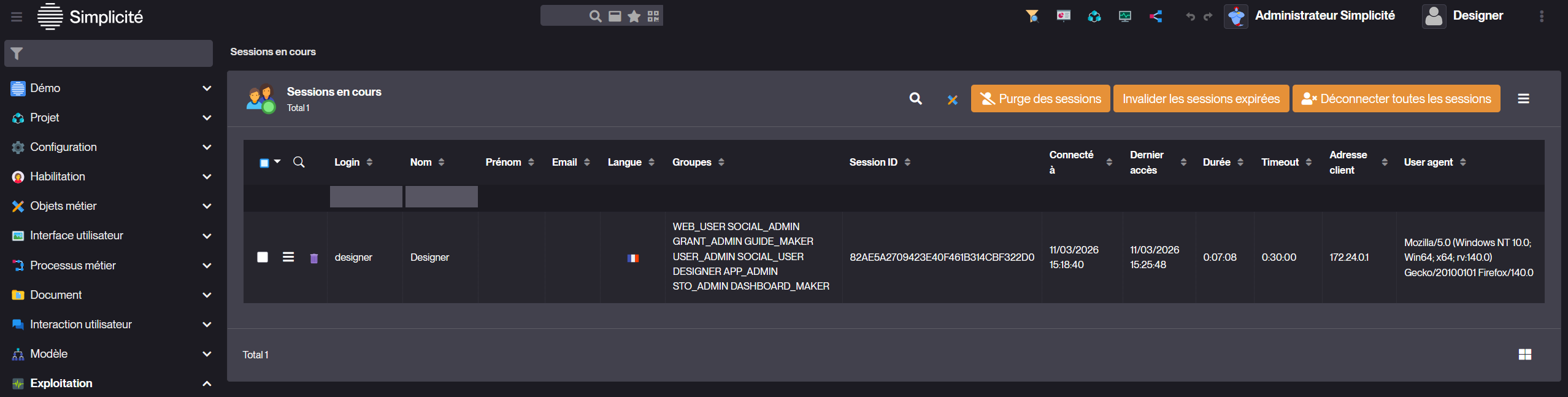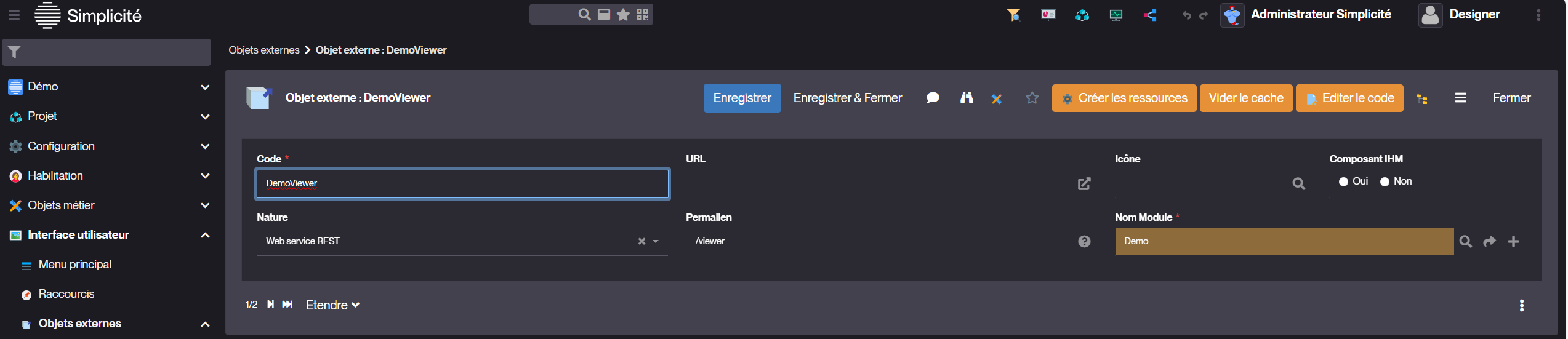 Sur une instance Simplicité 6.3.5 avec le module de Démo.