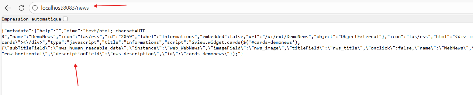 [Chrome] Au niveau de l’url de la page, remplacer /news par /ui/ext/DemoNews pour contourner l’URI_MAPPINGS.