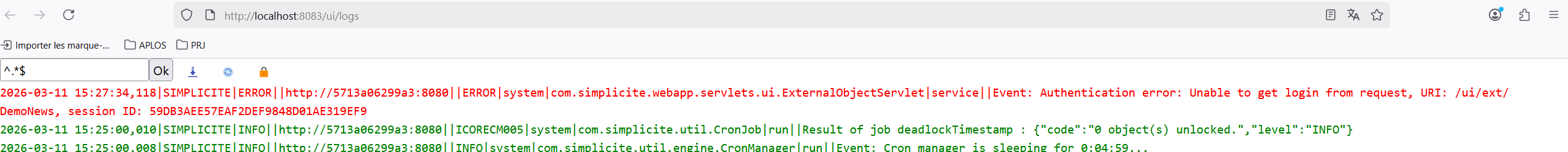 Pas d’erreurs, mais on arrive sur la page d’accueil et non le contenu de /ui/ext/DemoNews.