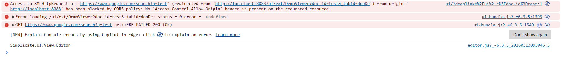 Avec http://localhost:8083/ui/ext/DemoViewer?doc-id=test pas de problème je suis redirigé vers la page externe sans repasser par l’UI Simplicité. C’est ce comportement que j’essaie de reproduire avec le permalink.