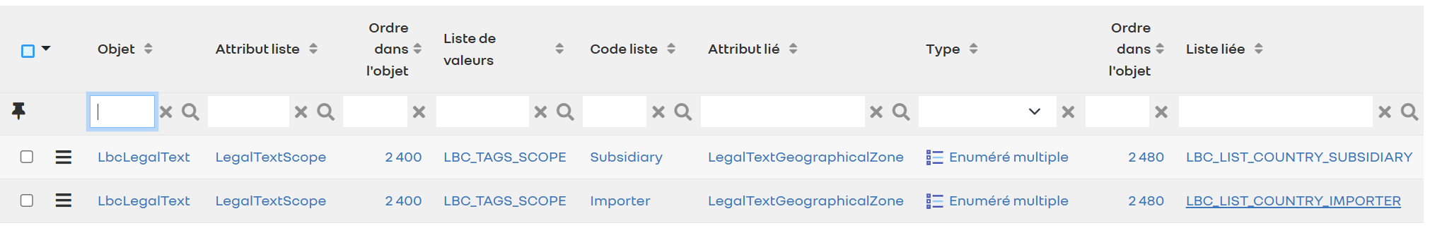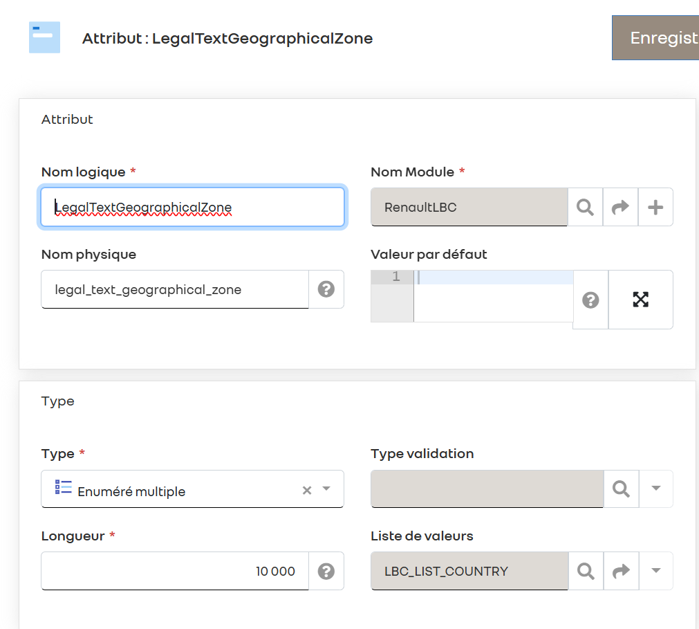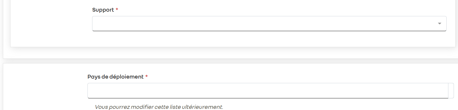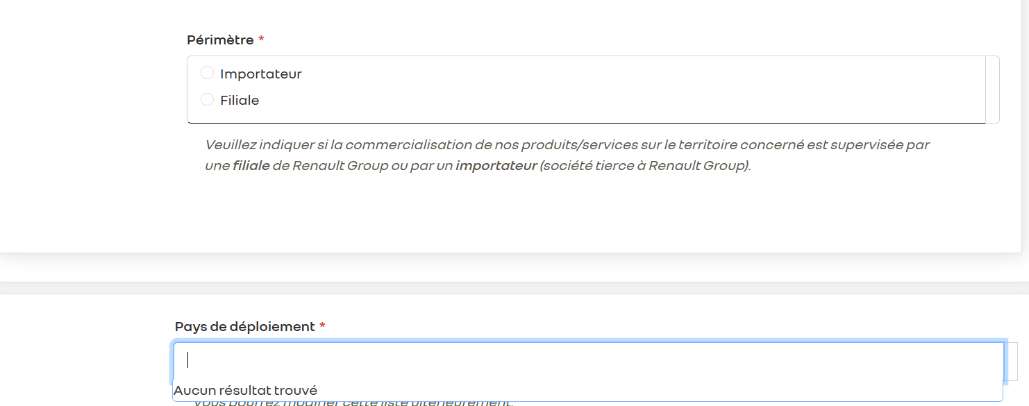 Dans ce cas, l’attribut pays de déploiement reste vide : nous devons forcer la liste au niveau du code.