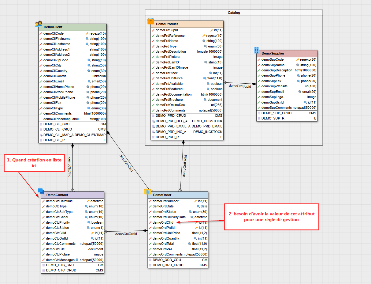 Pour donner un peu de contexte, dans notre application on est dans un cas similaire aux liens entre DemoClient, DemoContact et DemoOrder. Quand on crée un DemoContact on a besoin pour une règle de gestion de connaitre le client qui est sur la commande associée au DemoContact qu’on est entrain de créer :