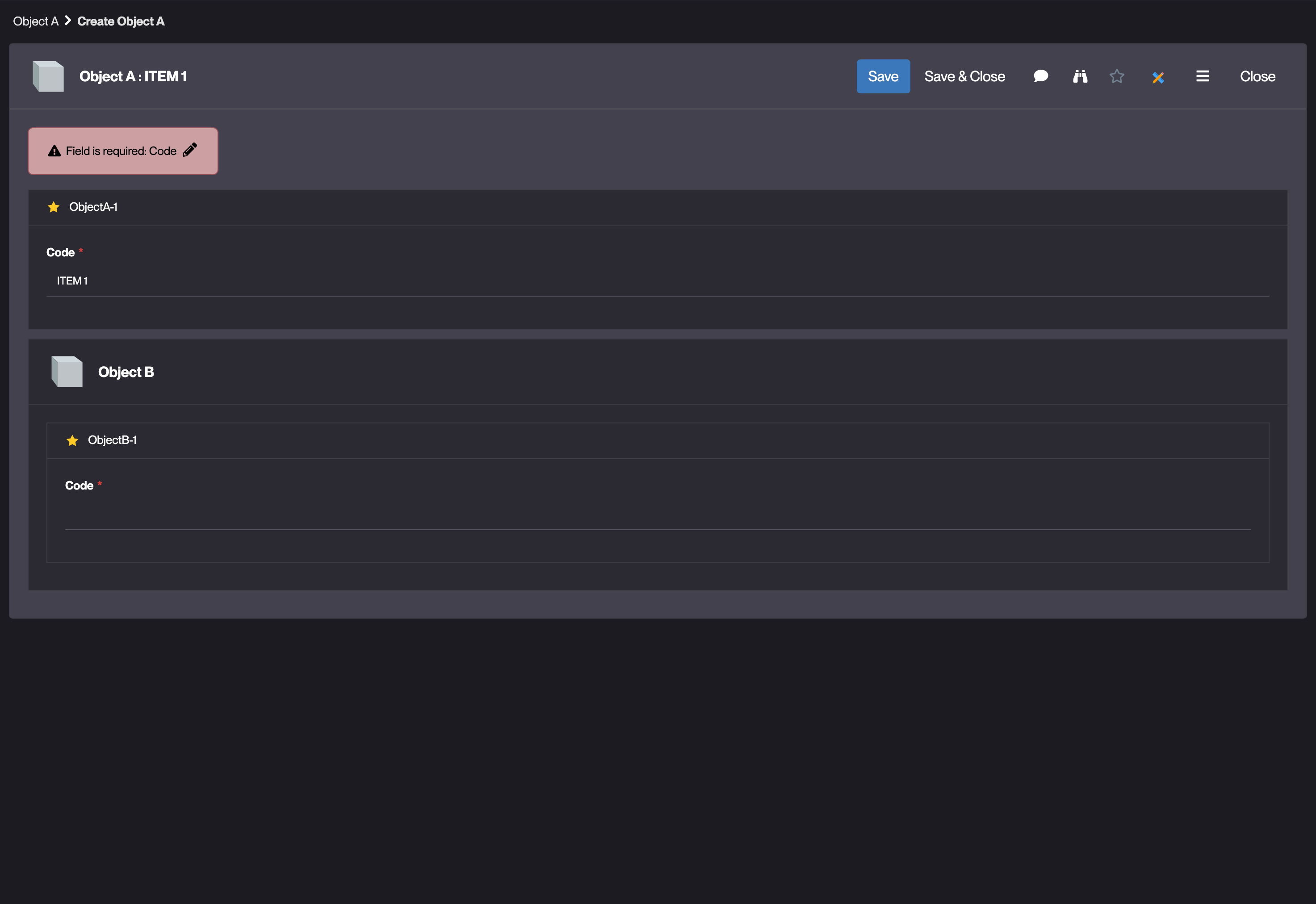Créer une occurrence de A sans remplir le champ obligatoire de B