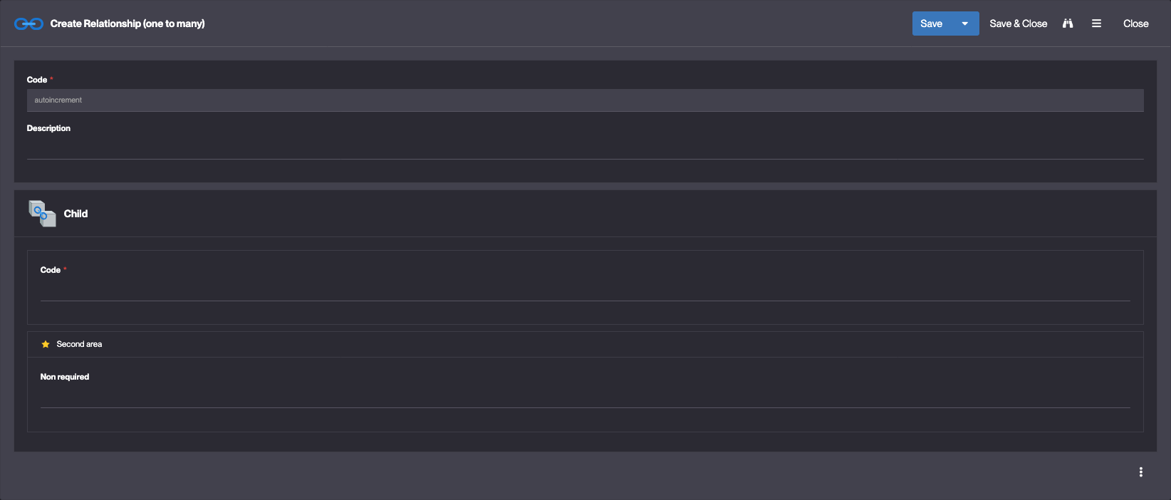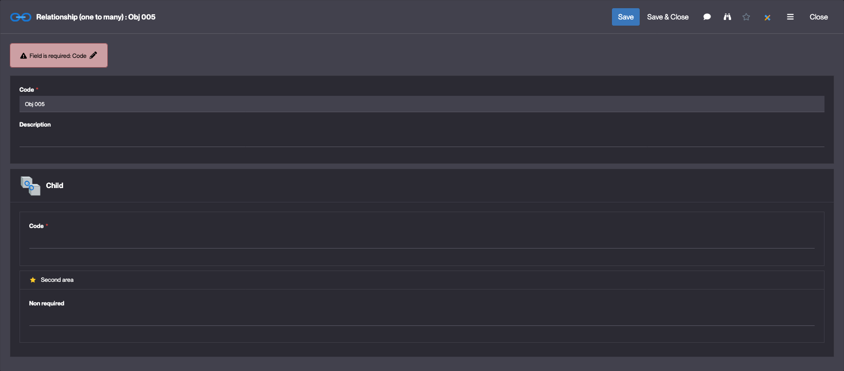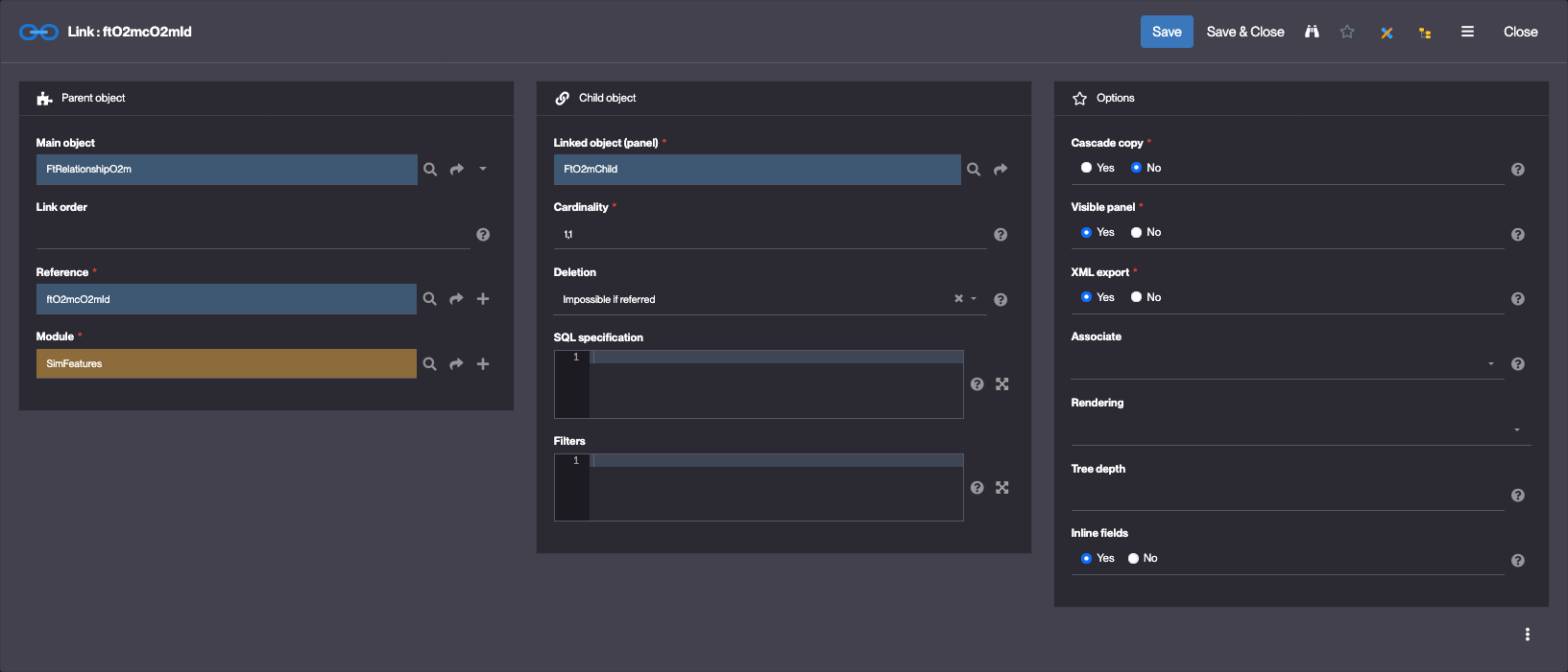 Dans ce module on a un objet FtRelationshipO2m “Relationship (one to many)”, lié à un objet FtO2mChild :