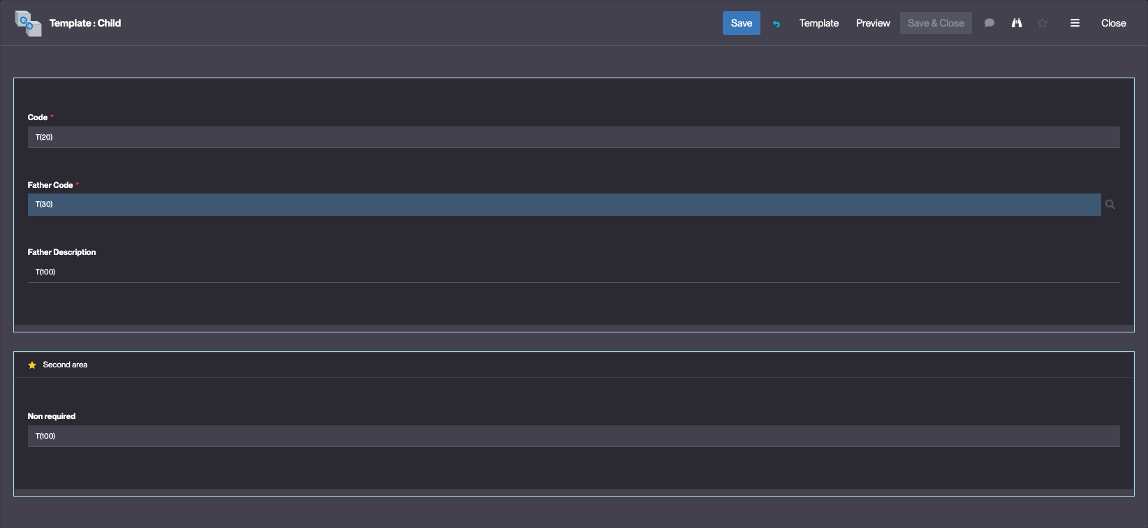 Les deux field area de l’objet Child sont bien visibles.