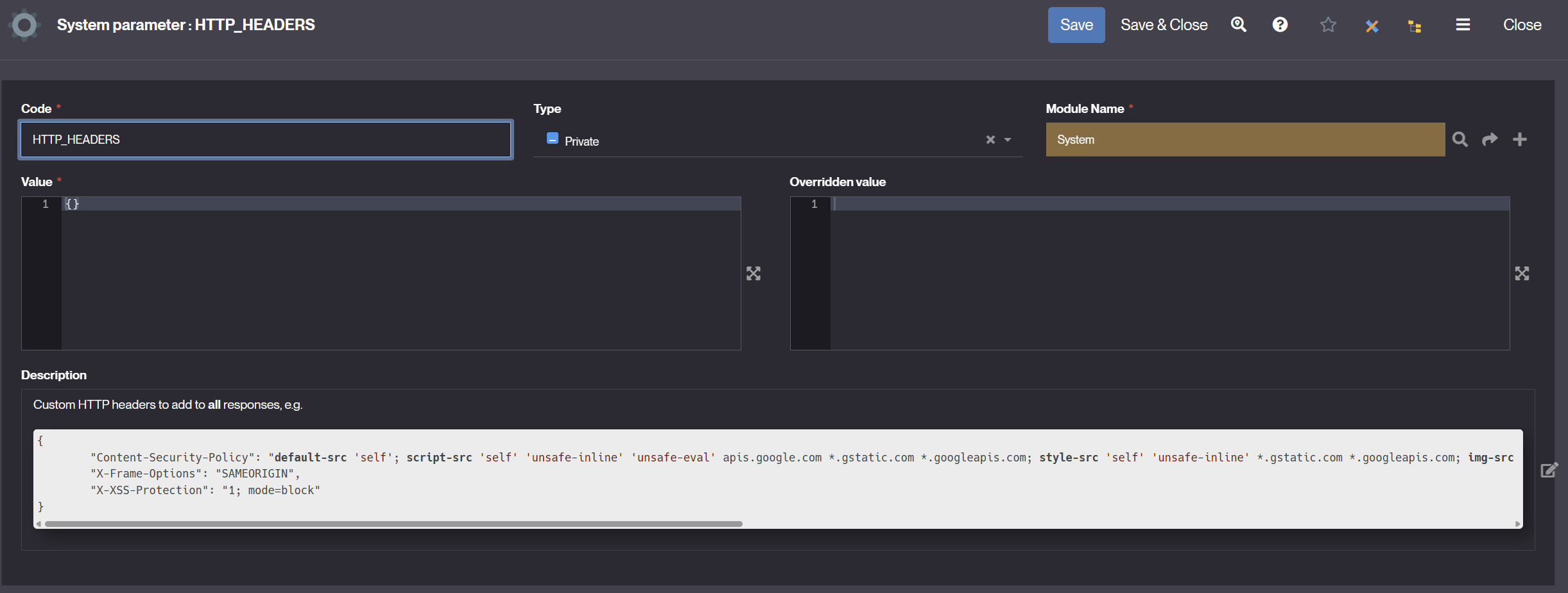 2.Existe-t-il une documentation ou un exemple de configuration type pour sécuriser les headers dans une instance Simplicité ?
