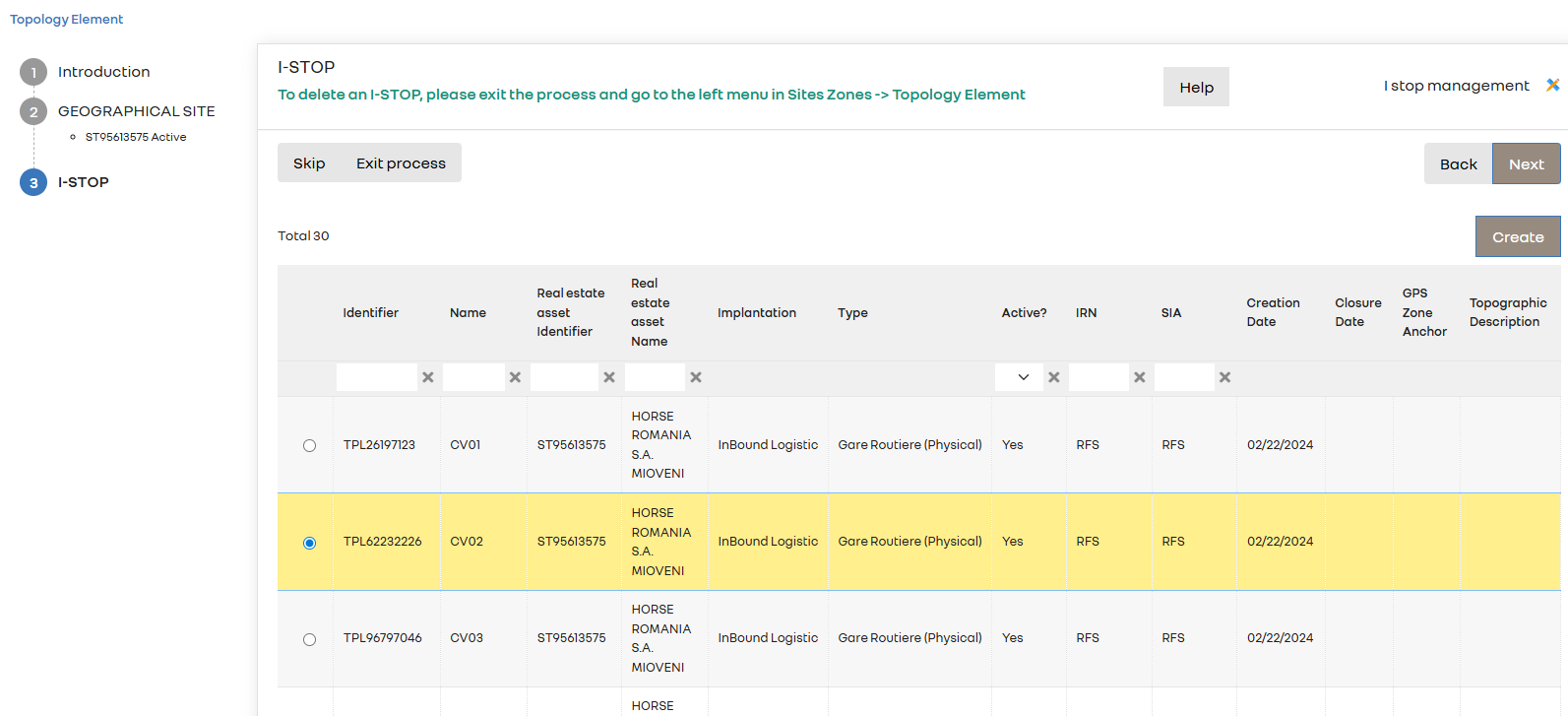 Dans un business process de mise à jour d’éléments, j’aimerais avoir la possibilité dans un des deux écrans suivants de pouvoir supprimer des “I-STOP”.